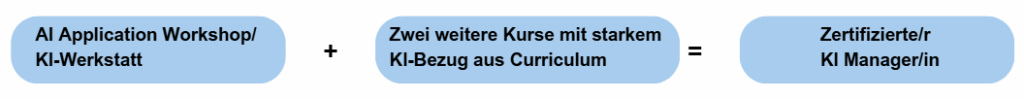 Der Lehrgang „zertifizierte/r KI ManagerIn“ kann auch mit einem oder zwei Ki-bezogenen Kursen noch im Wintersemester 2025/26 gestartet werden.